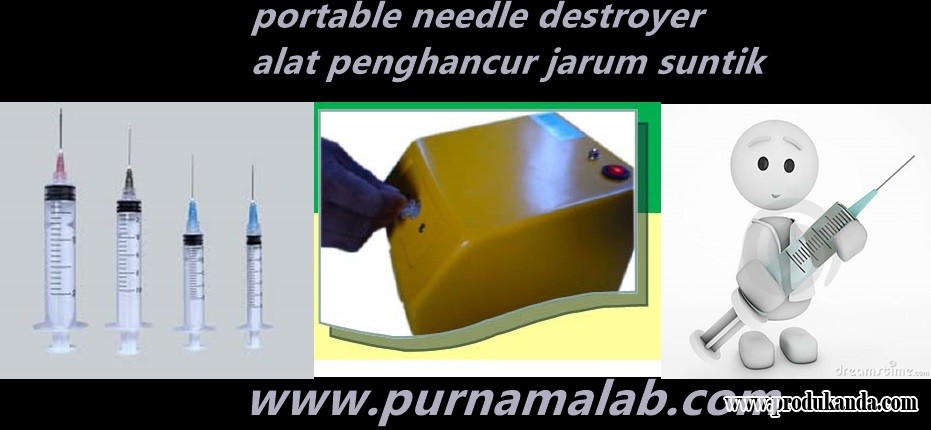 PORTABLE NEEDLE DESTROYER merupakan mesin penghacur jarum suntik yang sudah dipakai, guna menghindari penggunaan ulang jarum jarum suntik tersebut, menghindari dari penggunaan yang tidak semestinya, menghindari virus dan lainnya.